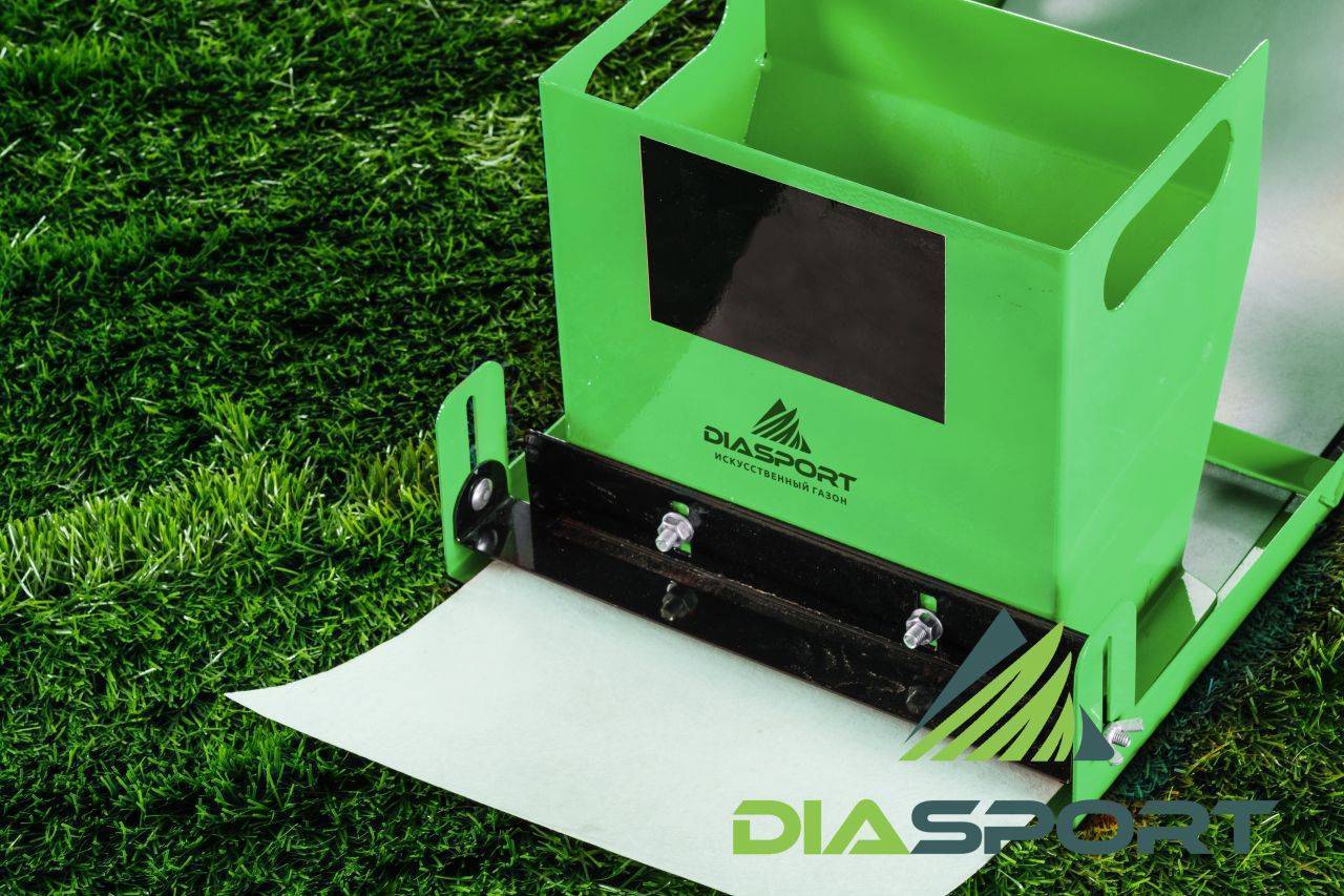 Машинка для нанесения клея в первую очередь служит для сокращения количества человек, принимающих участие в такой операции как склеивание рулонов искусственного газона, она также экономит и время на операцию. Благодаря уникальной конструкции машинка имеет бункер для клея с регулируемым дозатором и перекладину для шовной ленты с прижимом по основанию. Все эти элементы позволяют равномерно наносить клей на ленту, разматывая рулон по месту будущего шва.