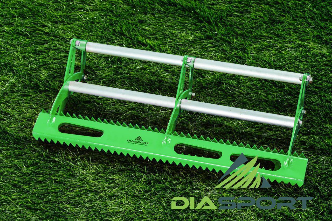 Зажим для искусственного газона является базовым инструментом при монтаже футбольных полей. Для инсталляции покрытий и в особенности стыковки полотен газона требуются колоссальные усилия в натяжении/перемещении/смещении покрытия, т. к. вес рулонов порой достигает 500 кг. Эту задачу решает зажим для искусственной травы. Благодаря зубчатым полотнам и уникальной конструкции инструмента достаточно просто зафиксировать и сместить газон. За удобные алюминиевые рукоятки можно взяться обеими руками. Зажимы от DiaSport позволяют распределять усилия и избежать боли в суставах рук и стертых пальцев.
